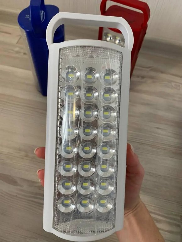 Свинцево-кислотна акумуляторна батарея 6 в, мережевий шнур знаходиться під задньою кришкою пристрою, для зручності при перенесення ліхтаря і його більш легкої зарядки. Зверху є ручка для перенесення ліхтаря і отвори для можливості кріплення на стіну. 24 SMD LED світодіодні лампи ліхтаря дають дуже яскраве світло, а приємним бонусом є наявність роз'єму USB для зарядки смартфона.